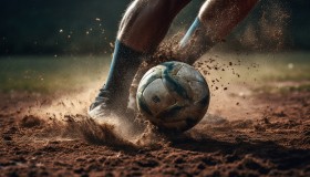 soccer football player kicking ball sport athlete action motion competitive determination grass night skill low angle championship professional dynamic energy power goal pitch boots generative ai ai generatedSimilar Photos