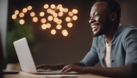 Happy African Customer Browsing on Laptop
