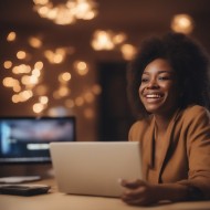 ai generated african woman customer laptop technology internet happy smiling digital online browsing modern lifestyle connectivity ecommerce remote satisfied young professionalSimilar Photos